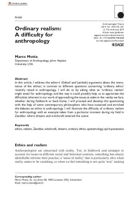 Pdf Ordinary Realism A Difficulty For Anthropology Marco Motta Academia Edu